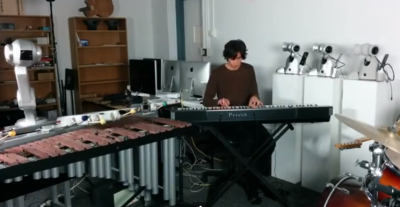 The project was created during a span of several months at Georgia Tech. The Shimi robots analyze the music offline and generate a sequence of movements and musical phrases that can then be performed live. Shimon, is given the chord progression prior to the performance, then figures out how to improvise with Bretan. The student will spend the next few months fine-tuning the process to allow real-time analysis and composing.
